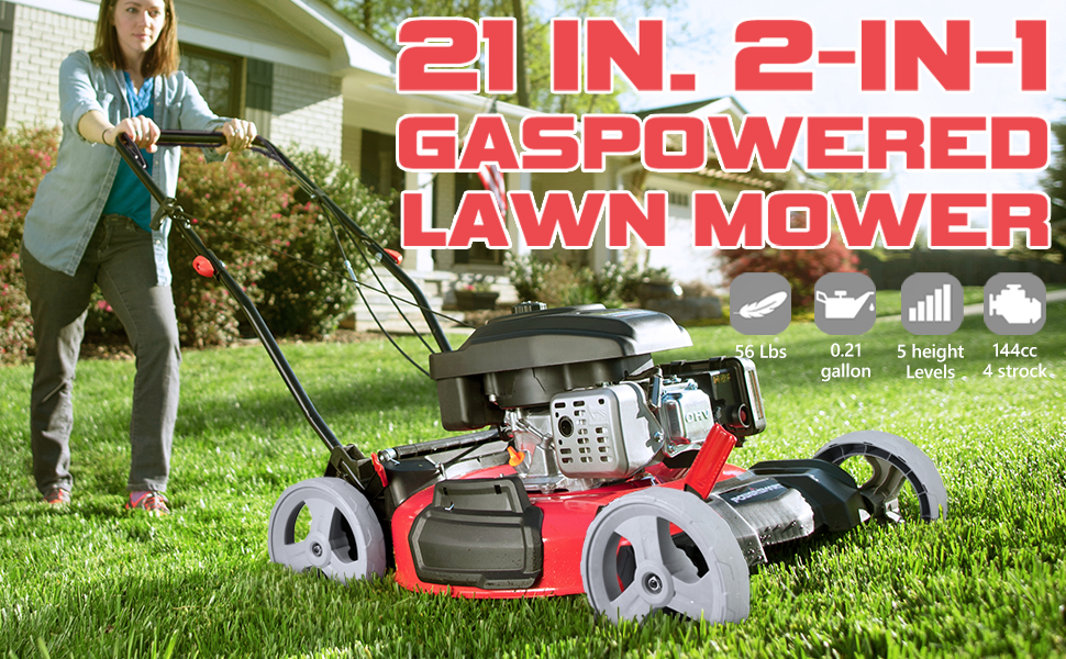 - 144cc 4-Cycle Gas Engine: equipped with recoil starter for one-pull start. Reliable 144CC gas power, mowing quick, mowing professional.