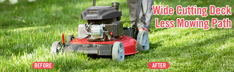 - 21-Inch Cutting Deck: 21" wide cutting deck with patented blade tech, help you mowing your sizable yard quicker.